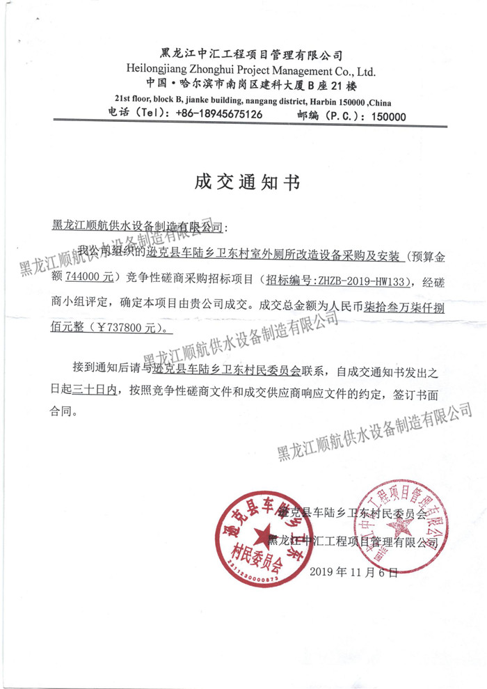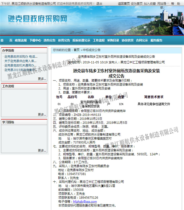 逊克县车陆乡卫东村室外厕所改造设备采购及安装 已全部完成合同工作内容并经验收交付使用 |